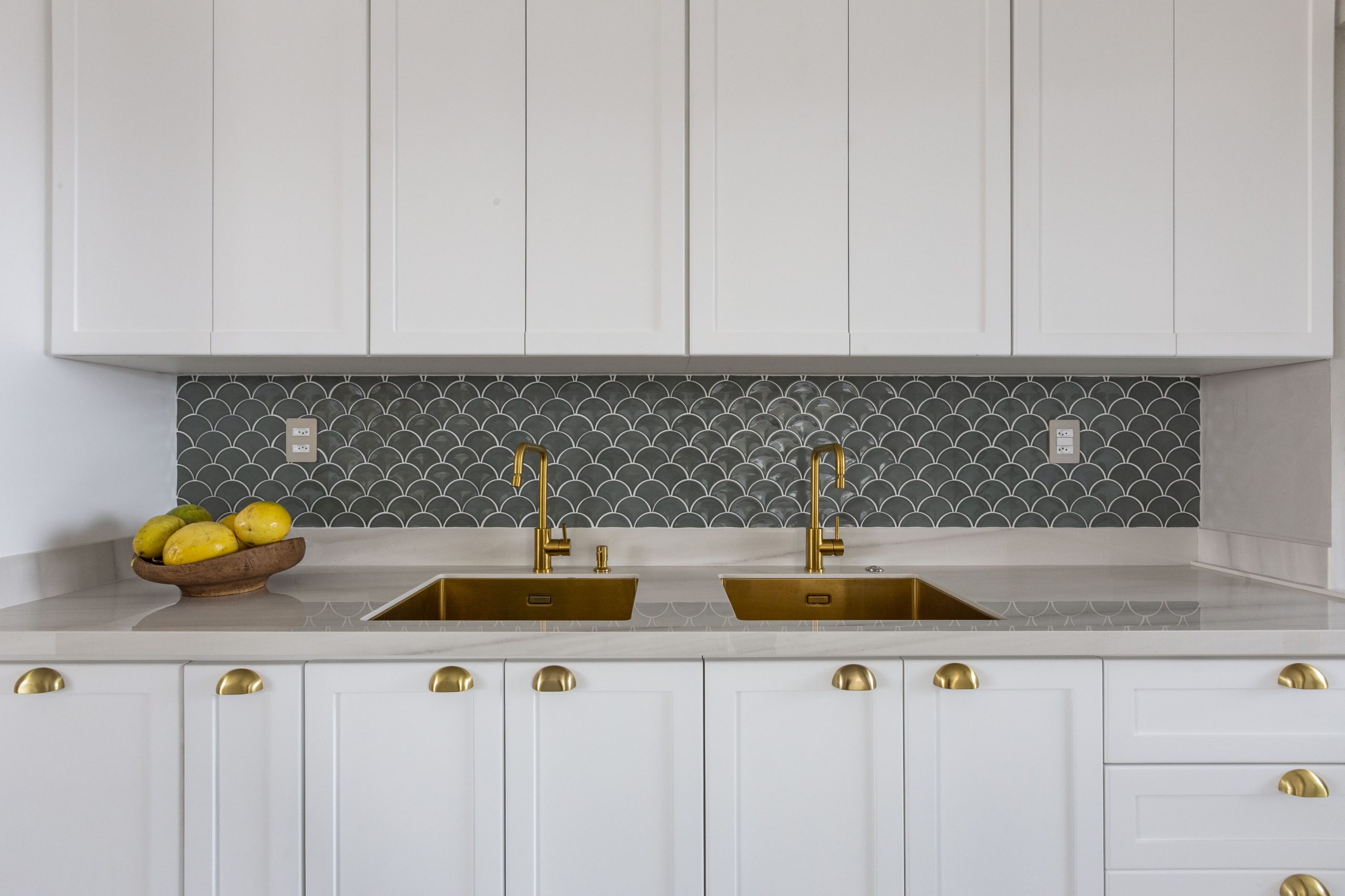 O dourado também protagoniza a cozinha com as decisões certas. Mari revela que ele se sobressai em cubas, torneiras e puxadores dos armários, transformando o décor em uma verdadeira experiência visual. “Nessas situações, gosto de trabalhar com pedras em cores em cores mais claras, como o branco”, comenta.