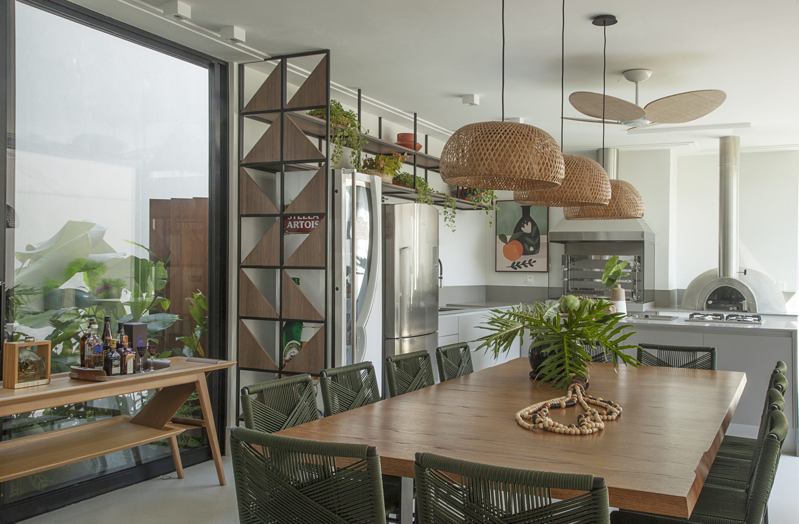 Entre os elementos mais usados estão pedra, madeira, barro, sisal, lã e palha, aplicados em revestimentos, mobiliário e objetos decorativos. A arquiteta aposta também em artesanato brasileiro, resgatando técnicas tradicionais e promovendo identidade cultural.