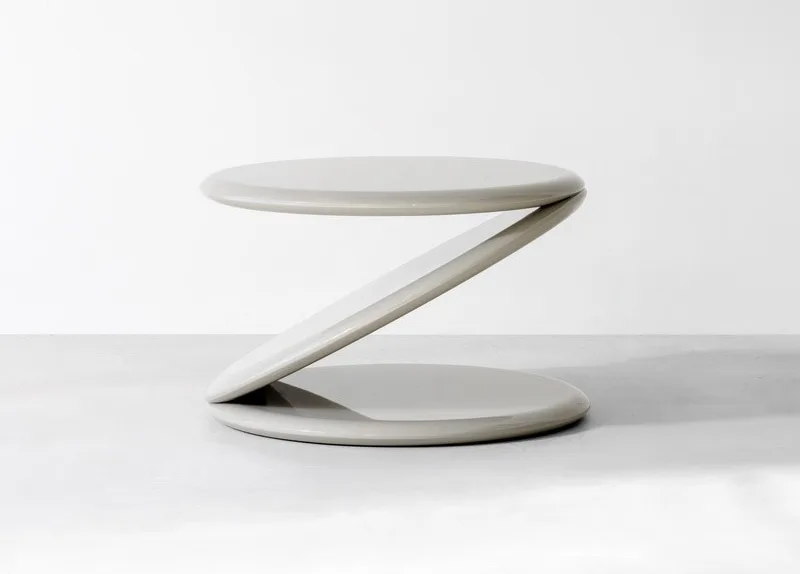 A mesa Equilíbrio, da DIEEDRO, aposta em desenho intrigante que desafia o olhar. Jayme Bernardo conta que captou o movimento da peça ao observar uma moeda girando no chão, traduzindo essa percepção para um objeto leve e visualmente instigante.